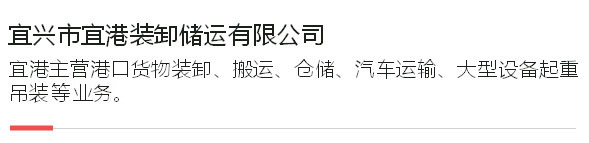 本公司創建于1956年,前身是宜興市港務管理處宜城港區,2001年實行公司改制,是宜興地區具有較強實力的港口裝卸、起重運輸的企業,在市內外享有較高的聲譽。